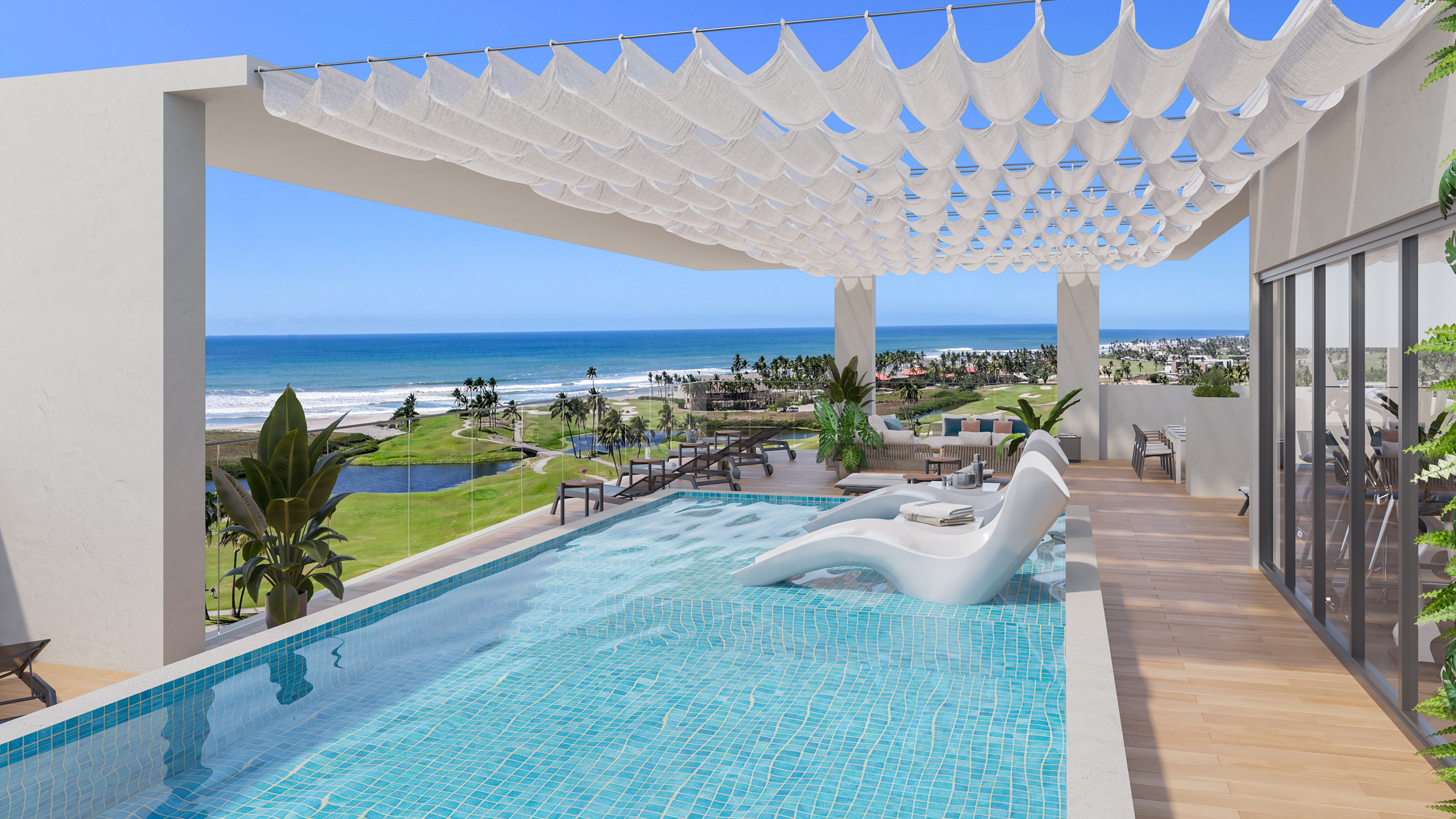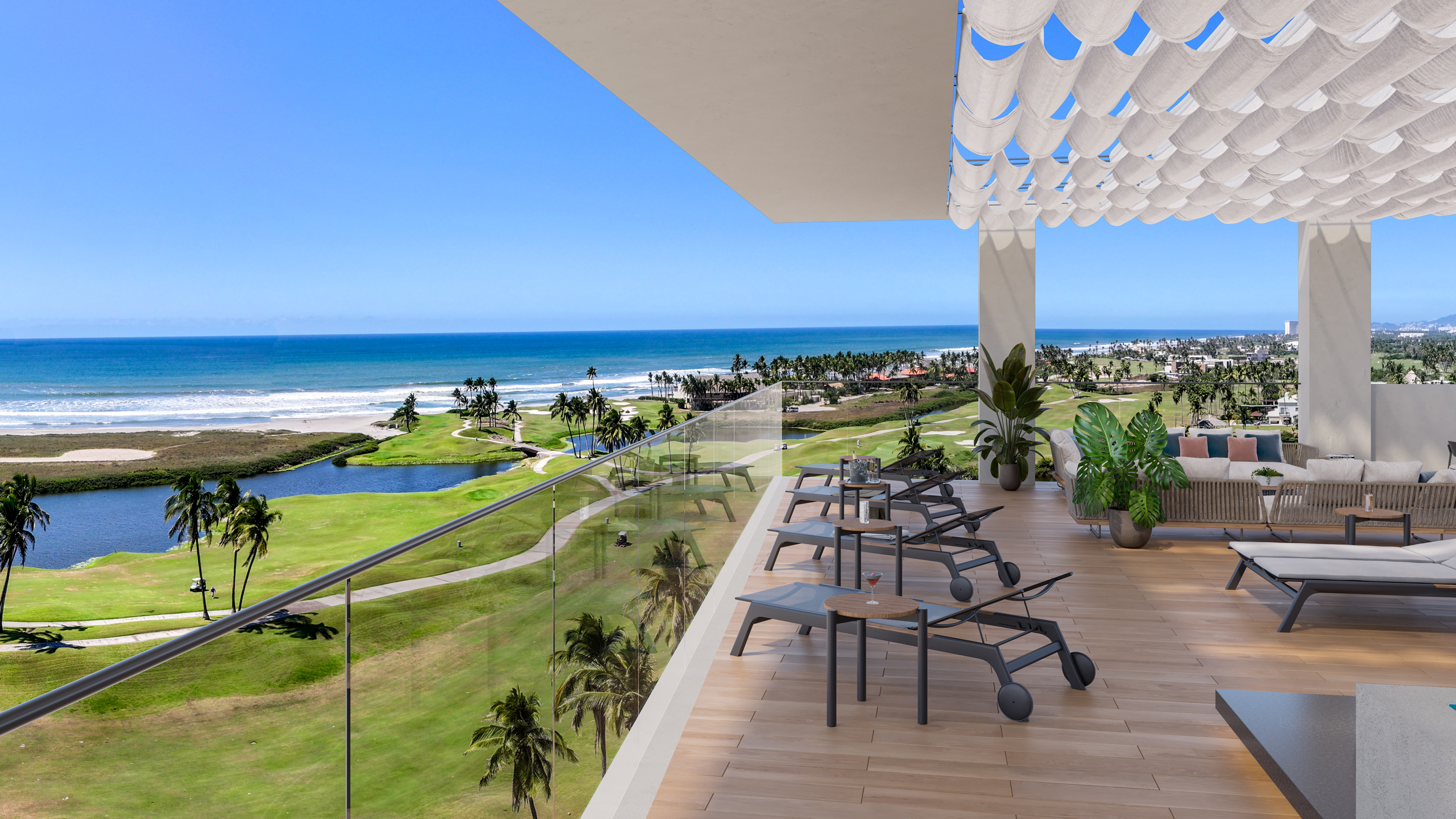 Disfruta de un espectacular rooftop diseñado para el descanso y la contemplación. Una alberca infinita, un distinguido spa y un dinámico gimnasio enmarcan vistas inigualables al Océano Pacífico, el campo de golf y la Laguna de Tres Palos.